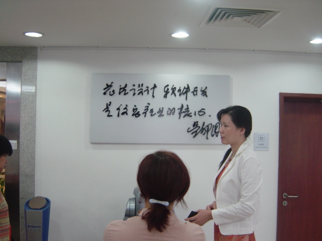 會議地點(diǎn)設(shè)在北京中星微電子總部,看。。。。。。門口還擺著歡迎牌。。。。不錯不錯。。。。。中星微的前臺妹妹那么認(rèn)真地在看什么呢?嘻嘻。。。。 (圖2)