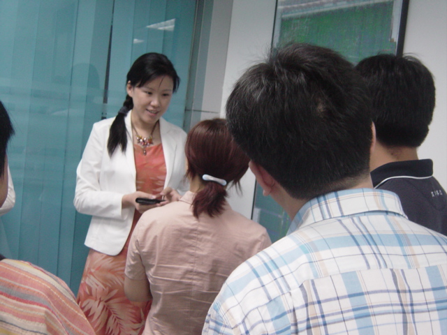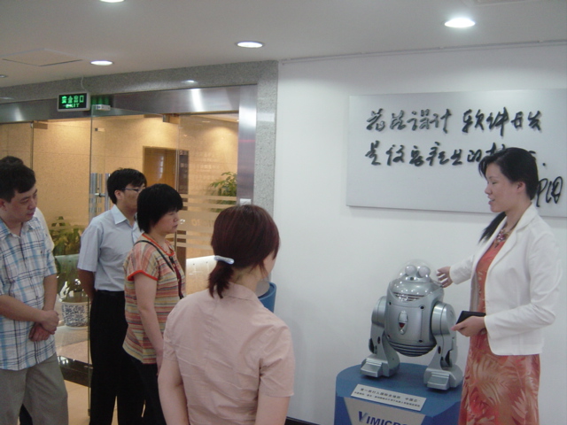 會后,在中星微電子代表的引領(lǐng)下參觀了中星微電子有限公司。看。。。。。咱們同仁正認(rèn)真聽講解員妹妹細(xì)微動人的解說。。。 (圖4)