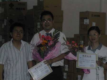 (圖四)熊濤經理與“銷售標兵”、“優秀員工”合影留念