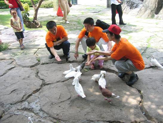 歡樂谷里那么多刺激的項目,小朋友自然玩不了,只能喂喂白鴿啦
