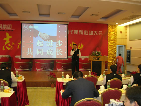 孫總致歡迎詞,并對本次會議主題“一起進步,共同成長”作出非常形象的詮釋,對市場及銷售方面,作了總結和展望。