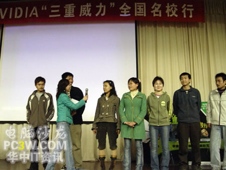 隨著上午放學時間的到來,武漢大學桂園產品演示區這邊的人流量也多了起來,巡展場面達到了今天的最高峰。火爆的場面甚至連小編自己也沒想到。路過的同學們紛紛走過來欣賞和體驗NVIDIA及銘瑄顯卡所帶來的震撼效果。
