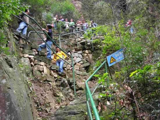 柘林瀑前美女倚架,后面的帥哥看過(guò)來(lái)。