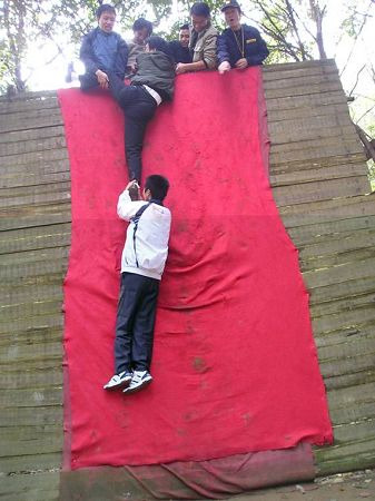 “中國龍”隊在隊長的帶領下全部順利通過畢業墻