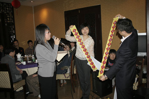 晚會開始前商科集團(tuán)領(lǐng)導(dǎo)對本年度表現(xiàn)優(yōu)秀的員工進(jìn)行了嘉獎和表彰他們是:第四季度部門之星:技術(shù)部 :敖亞軍、業(yè)務(wù)部:吳翠、市場部:臧永剛,第四季商科標(biāo)兵:財(cái)務(wù)部:羅春菊,第四季度銷售標(biāo)兵 :田勇,2006年度杰出員工:馮燕蘭,優(yōu)秀職能經(jīng)理 :楊毅,優(yōu)秀經(jīng)理 : 邵清泉