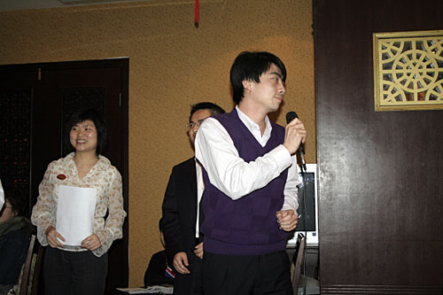 整個大會分為三個部分,第一樂章:2006年優(yōu)秀員工表彰大會;第二樂章:迎春晚會;第三樂章:神秘大抽獎。