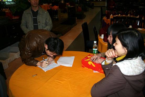 下午4時整,全體與會人員懷著興奮的心情,準時來到位于廣州市區大嘴漁港飯店的禮堂大會場。在進入會場之后,工作人員為大家準備好了抽簽箱。每人都能抽取一個編號,根據這個編號大家就能參加商科傳統的抽獎活動了。