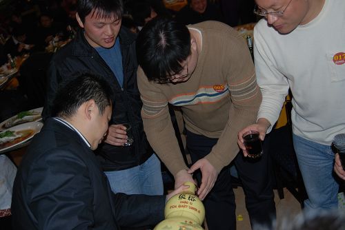 不知不覺兩個多小時已經過去了,在同事們快樂的笑聲中,游戲節目圓滿結束了。大家大概也都饑腸轆轆了,公司為全體員工準備了豐盛的晚宴享用,大餐開始了。