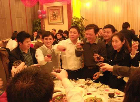 晚會的第二波高潮開始了,孫武源先生和劉險峰先生逐一為各代理商敬酒。