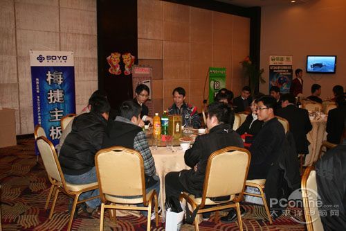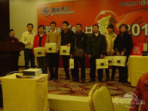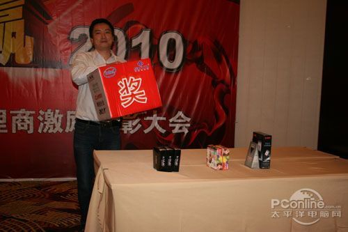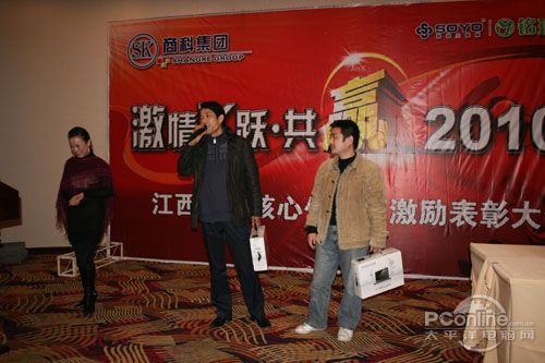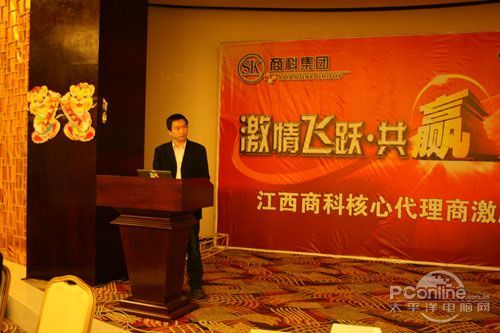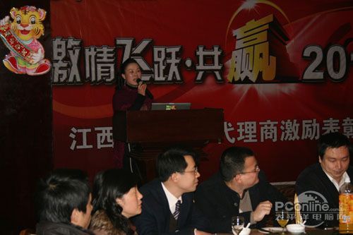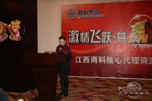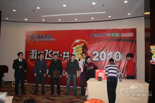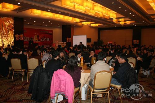 本次會議有眾多經銷商應邀赴會,更有來自NVIDIA和intel的嘉賓光臨現場,其中包括來自NVIDIA公司的彭華先生,以及INTEL公司的吳偉先生。而我們太平洋電腦網江西站作為到會的媒體代表,也被作為嘉賓介紹給大家。與上面的幾位重量級人物一起被主持人隆重介紹給廣大商家,筆者實在是感到有點汗顏!會議首先由NVIDIA公司的彭華先生為大家介紹阿凡達與NVIDIA的淵源(原來《阿凡達》出色的CG效果可是由NVIDIA的顯卡打造而成的)以及NVIDIA公司的新技術與政策。然后再由江西商科總經理吳暉先生講話,再后就是對2009年度成績突出的商科合作伙伴進行表彰頒獎(獎品非常豐厚哦,竟然是臺電上網本)。最后就是激動全場的抽獎活動了!