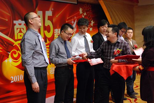 接著頒發的是商科09年部門之星獎,由集團熊總頒發。這些員工2009年工作成績表現突出,由公司各部門民主推選獲得,我們向他們表示祝賀