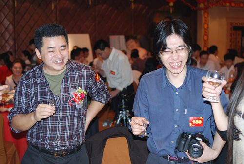 商科集團孫總、劉總依次向各部門員工敬酒,表達公司領導對員工的關懷,宴會在歡樂的氣氛中進行