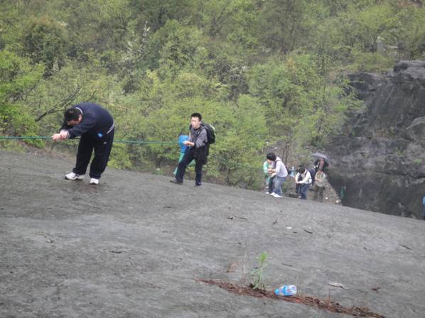 上海分公司于4月18、19日到紀(jì)龍山進(jìn)行了今年艱苦的拓展之旅。我們18日上午7:30從上海出發(fā),直至中午11:30 才來到紀(jì)龍山山腳下,經(jīng)過簡(jiǎn)單的午餐后,我們冒雨向山上進(jìn)發(fā)。。。。。。山路很滑,很泥濘,大家自動(dòng)自發(fā)的相互攙扶,爬過了一個(gè)又一個(gè)險(xiǎn)坡。