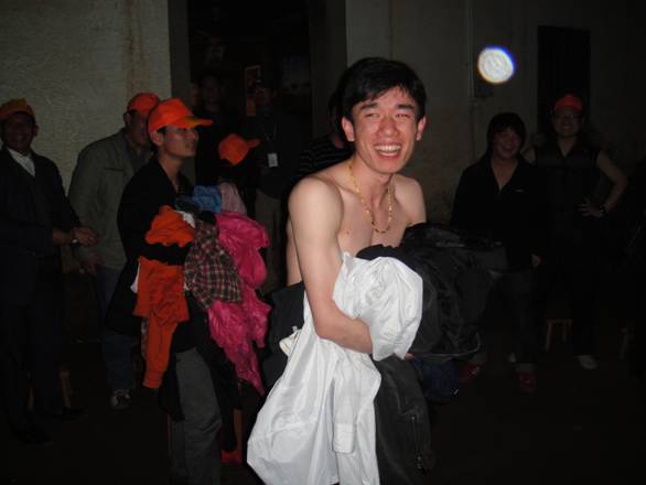 為了自己的團(tuán)隊(duì),為了達(dá)到教練提出的要求,所有的領(lǐng)隊(duì)都義無反顧的脫光了自己的衣服(不能脫的除外)。