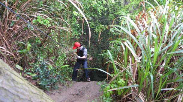 在山上經(jīng)過簡(jiǎn)短的休整,我們繼續(xù)挑戰(zhàn)臥龍洞。這是一個(gè)半開放狀態(tài)的崖洞,在水流湍急的地方架起了一些竹橋,大家還是非常自覺的互相幫助,只聽到洞里不斷傳來:“當(dāng)心頭。。。這里滑。。。褲腳要卷高些,這里水急。。。當(dāng)心。。。”等等的提醒聲。冰冷的泉水穿過腳踝,大家全濕了鞋,但心里的溫暖遠(yuǎn)遠(yuǎn)超過身體的溫度。