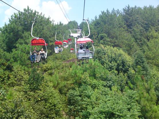 千島湖真是天藍山青,乘坐纜車讓我們飽覽了它的清麗秀美,大家都迫不及待地把這美景收在相機里!