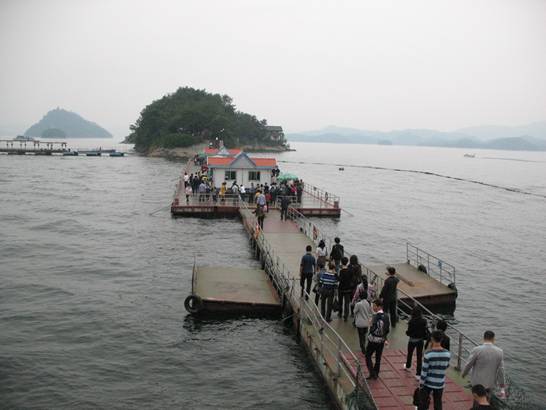 千島湖 我們一行隨導(dǎo)游坐船來到了湖上,放眼望去,整個湖面相當(dāng)?shù)那宄海u競秀,群山疊翠,若隱若現(xiàn),朦朦朧朧。湖面上,一座座蒼翠欲滴的小島星羅棋布,遠(yuǎn)處水天相接處煙波浩渺、大氣磅礴,近處湖水顯出深碧色,像一塊碩大無比的翡翠,湖邊細(xì)浪在微風(fēng)的吹拂下輕柔地拍打著岸邊, 令人心曠神怡。 稍作休整我們到達(dá)游湖的第一站鎖島。鎖島的面積不大,但卻是一個鎖的天地。整個島上,設(shè)置了多個掛鎖許愿的區(qū)域,游客通過掛開心鎖、同心鎖、友誼鎖、吉祥鎖、功德鎖等等,把對生活的美好祝愿留在鎖上。