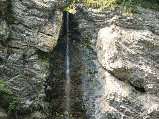 一線瀑 前行數(shù)米,老遠(yuǎn)就聽見驚天動地的“雷”聲,走近了才知那瀑布隱藏在一個巨大的石洞內(nèi),像龍嘴里吐出的白練,故稱之為龍喉瀑,上游之水如游龍一般通過一個跌巖穿入一個石縫,在石縫窟窿里形成一個“之”字形瀑布,因有石洞包圍,垂落下來時,其聲如虎狼咆哮,真是壯觀和驚心動魄。