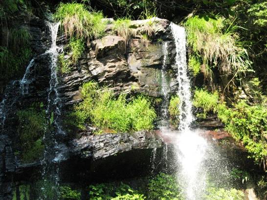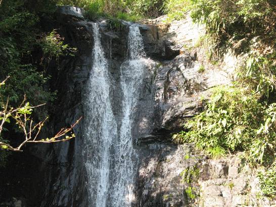 沿著曲折的棧道,我們難得看到兩支瀑布一大一小在同一巖石上傾注,猶如夫妻朝夕相伴,夫妻瀑布是也。 景致最美的是小黃果樹瀑布,瀑高20余米,瀑寬約15米,貼石壁傾斜而下,水勢滔滔,水流飛泄時,因碰撞凹凸不平山巖而產(chǎn)生水花四濺,飛飛揚(yáng)揚(yáng),猶如大霧彌漫,雄渾瑰麗。