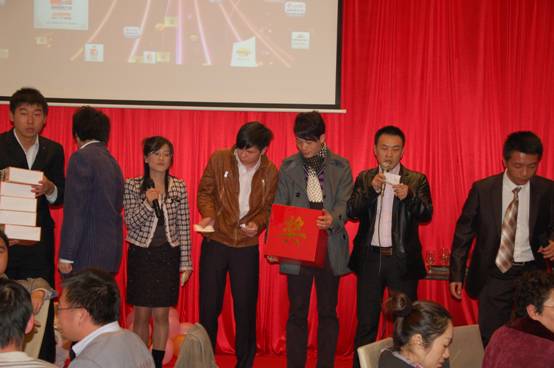 晚宴現(xiàn)場還同時進行了抽獎活動,獎品尤其豐厚,總部產(chǎn)品事業(yè)部趙愛軍經(jīng)理。賈慶楓經(jīng)理上臺抽取四個特別獎,并為獲獎?wù)哳C發(fā)獎品;