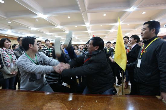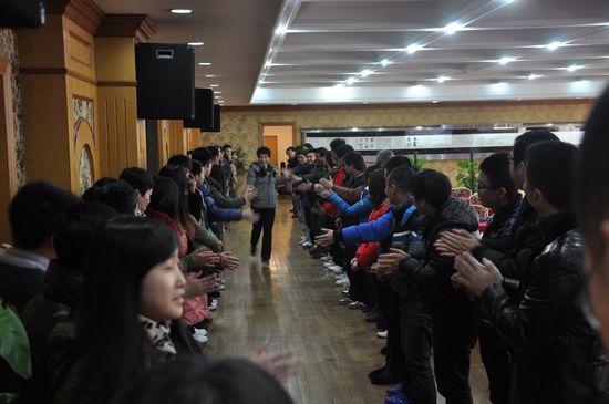 會議最后一項是優秀員工頒獎儀式,所有獲獎人員都要跑過“榮譽大道”