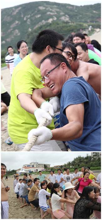 雖然此次旅程遇到了夏季常見的臺風天,但絲毫沒有影響大家出游的心情。旅途中,我們除了參觀美麗的島嶼風光外,更以沙灘為中心,進行了激烈的拔河、八人九足、排球比賽,大家情緒高漲,積極參與到比賽當中。