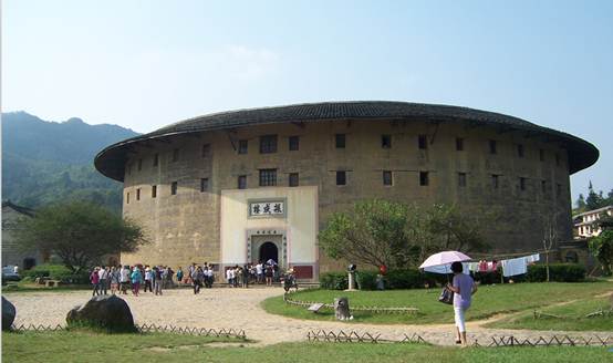 經過四個多小時的長途汽車,終于到了永定土樓景點,土樓有圓形的,還有方形的,到了這首先要參觀的就是號稱“最富麗堂皇的賀形土樓王子”--振成樓。