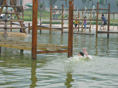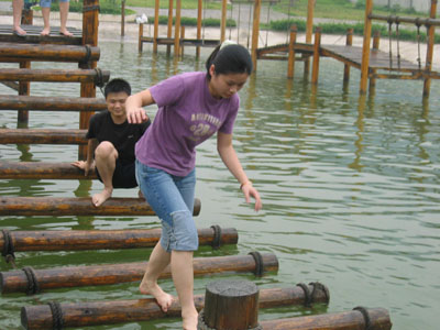再后來,商科一行繼續向前進,在前進的路上,商科眾將一展所長,看看這位大帥哥的鐵腿水上飄。