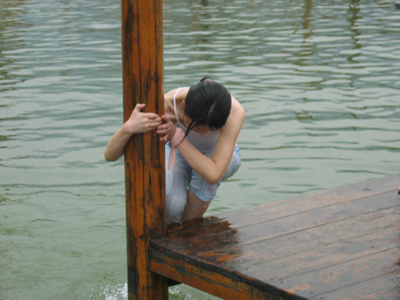 眼看著“海”里的仙女危險萬分,這兩個MM正想下水去救助……