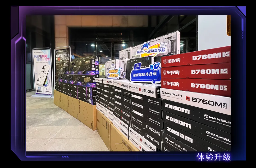 電競館劃分有單人房、雙人房、三人房、八人房等多種競技區(qū),全場共99臺(tái)機(jī)器,采用銘瑄板卡,包括B760系列主板、Z890系列主板和最新推出的銘瑄Intel Arc B580顯卡。電競館緊跟市場潮流,選擇時(shí)興的“3I平臺(tái)”(英特爾CPU+英特爾芯片組+英特爾GPU)為玩家提供強(qiáng)悍的性能加持。其中,MS-Challenger Z890M主板 x MAXSUN Intel Arc B580 Milestone 12G x 英特爾®酷睿™Ultra 200S系列處理器的超強(qiáng)搭配可謂最為亮眼。