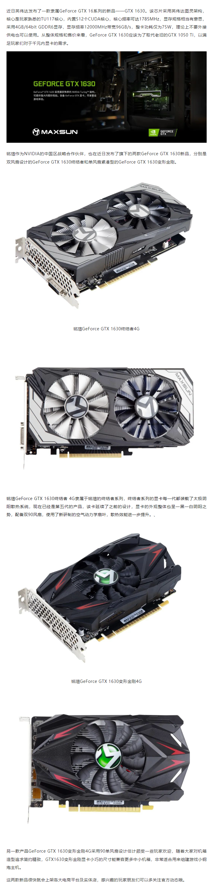 千元級更好的選擇 銘瑄GeForce GTX 1630雙雄發(fā)布