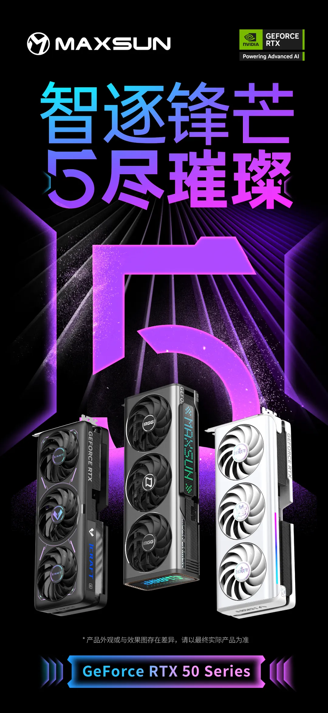 隨著新一代Blackwell架構(gòu)顯卡的發(fā)布,銘瑄也隆重揭曉全新GeForce RTX 50系列顯卡,包括MGG、iCraft璦珈、iCraft電競(jìng)之心三個(gè)系列。每個(gè)系列都獨(dú)具特色,針對(duì)各種用戶(hù)需求精心打造,從外觀(guān)設(shè)計(jì)、燈效展示、散熱效能等各方面都進(jìn)行了全面升級(jí),力求從多角度提供性能和美感的和諧體驗(yàn),全方位滿(mǎn)足不同用戶(hù)群體對(duì)于顯卡性能、外觀(guān)和功能的多樣化需求。讓我們一起期待銘瑄GeForce RTX 50系新品顯卡閃耀登場(chǎng),開(kāi)啟全新科技之旅!