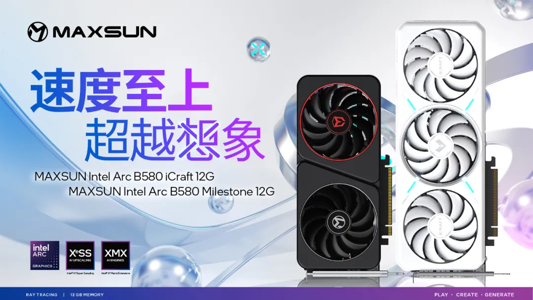 MAXSUN Intel Arc B580顯卡憑借其突出的高頻散熱優勢,在游戲與創作領域為用戶提供了堅實可靠的硬件支持,選擇MAXSUN Intel Arc B580顯卡,感受超越想象的無限可能!