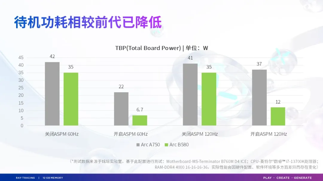 此外,MAXSUN Intel Arc B580 iCraft 12G在功耗控制上也進行了優化,待機功耗相較前代有了明顯降低,在不同電源管理模式下都表現出比前代更優的待機功耗數值,減少不必要的電力消耗,保持高效能耗比。