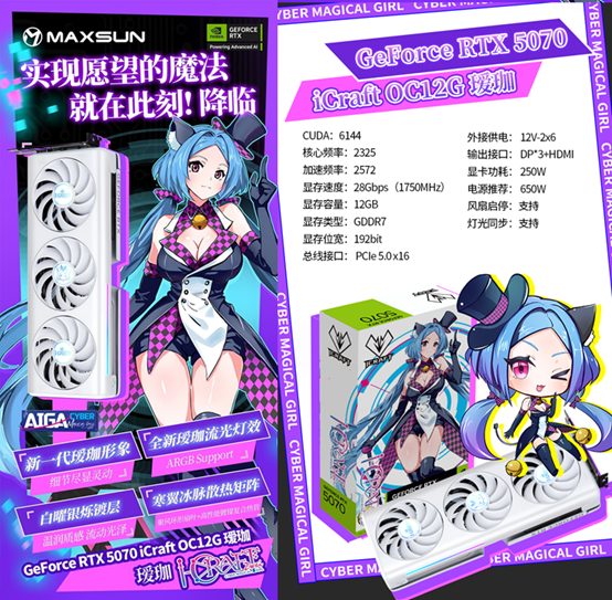 恰逢年末硬件升級煥新季,,想要在《賽博朋克 2077》的五周年更新中,以拉滿畫質沉浸式穿梭夜之城的街巷,在槍林彈雨與光影交織中收獲絲滑操作,一張性能強勁的顯卡必不可少——銘瑄GeForce RTX 5070 iCraft OC12G 璦珈正是為這份強悍體驗量身打造的升級優選,,讓每一位玩家都能解鎖賽博世界的全新打開方式。