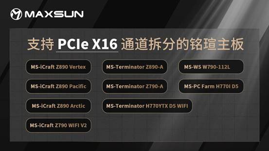 MAXSUN Intel Arc Pro B60 Dual 48G Turbo采用PCIe5.0 X8+PCIe5.0 X8接口設(shè)計(jì),只需主板支持PCIe X16 通道拆分為 X8+X8,即可在消費(fèi)級(jí)平臺(tái)上實(shí)現(xiàn)高效運(yùn)行,大幅降低部署大模型的整機(jī)成本。銘瑄多款主板支持PCIe X16通道拆分,助力顯卡雙芯性能滿血釋放,真正實(shí)現(xiàn)性價(jià)比之選,讓更多用戶能夠擁抱本地大模型。