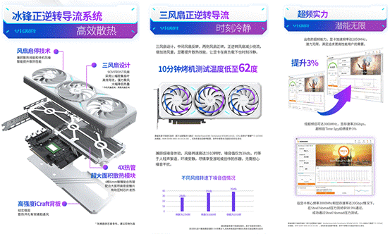 在顯卡性能日益強化的今天,散熱效能在一定程度上決定著硬件潛力的釋放程度。MAXSUN Intel Arc B580 iCraft 12G顯卡采用正逆轉(zhuǎn)導(dǎo)流散熱設(shè)計,相鄰風(fēng)扇旋轉(zhuǎn)方向不同,大幅減少氣流干擾,提升散熱效率,溫度更低,噪音更低。其搭載4根6mm鍍鎳復(fù)合熱管,配合高密度鰭片矩陣和三風(fēng)扇正逆轉(zhuǎn)導(dǎo)流散熱,在10分鐘Time Spy烤機測試中,溫度僅為62℃。無論是連續(xù)數(shù)小時鏖戰(zhàn)《三角洲》,還是高強度運行 3A 大作、處理 4K 渲染任務(wù),它都能始終保持 “冷靜輸出”,告別因過熱導(dǎo)致的降頻卡頓。