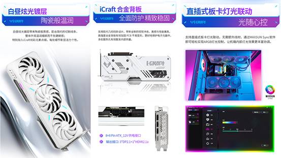 值得一提的是,MAXSUN Intel Arc B580 iCraft 12G還支持直插式板卡燈光聯(lián)動,無需額外線材,通過MAXSUN Sync軟件即可實現(xiàn)ARGB燈光控制,光隨心控,打造氛圍感拉滿的電競空間。每一次開黑對戰(zhàn),都能在光影流轉(zhuǎn)中感受電競的熱血與激情,細節(jié)之處盡顯個性與活力。