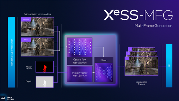 值得期待的是MAXSUN Intel Arc B580 iCraft 12G顯卡對英特爾即將上線的XeSS 3多幀生成技術(shù)的高度適配。作為XeSS技術(shù)的重磅升級,XeSS 3的多幀生成技術(shù)基于AI驅(qū)動,通過在原有兩幀畫面之間額外插入三幀AI生成圖像,實現(xiàn)輸出幀率提升至原始水平的4倍。在提升流暢度的同時,有效減少了低幀率環(huán)境下常見的畫面撕裂與偽影問題,《三角洲》中的高速轉(zhuǎn)移、準確射擊體驗將再上一個臺階。