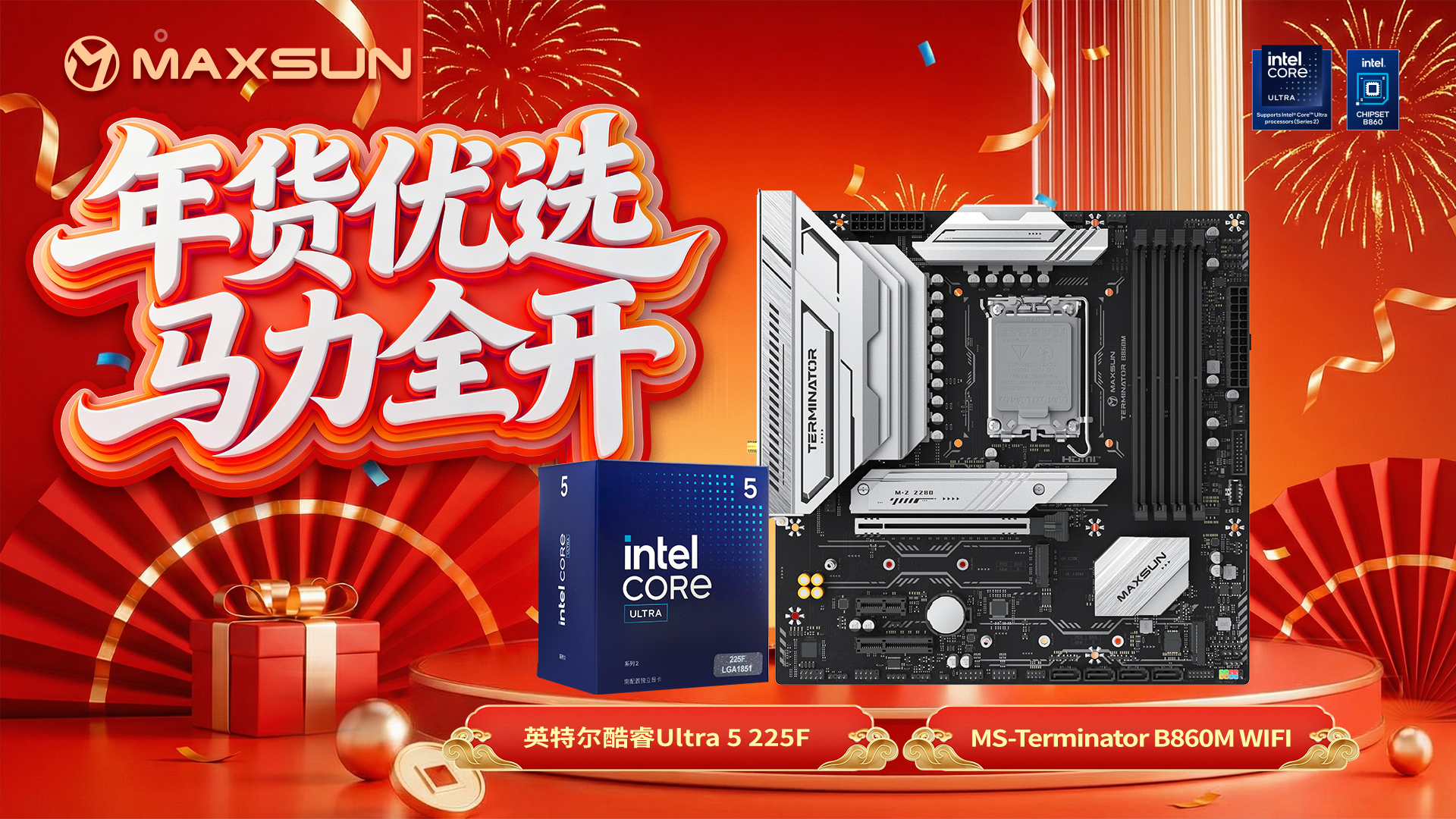 臨近新年,年貨節(jié)裝機熱潮來襲。無論是學(xué)生黨想要組裝入門主機、打工人計劃升級設(shè)備,還是游戲玩家籌備專屬電競主機,一套高性價比硬件組合仍是大眾主流優(yōu)選。在此推薦一套兼顧性能與實用的年貨硬件組合 —— 銘瑄 Terminator B860M WIFI 主板搭配英特爾酷睿 Ultra 5 225F 處理器,這套組合能讓你以合理的預(yù)算,解鎖旗艦級的絲滑體驗,兼顧了高性價比與強悍性能,堪稱年貨節(jié)裝機性價比標桿。