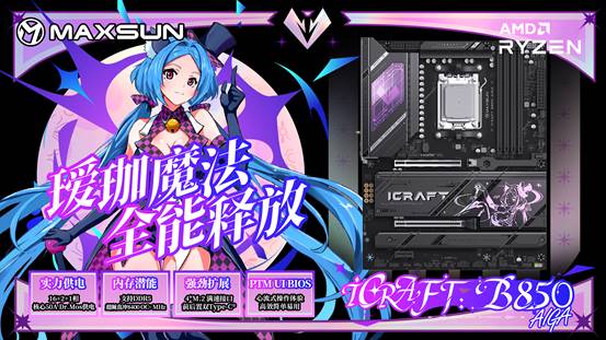 銘瑄iCraft B850 AIGA主板憑借強悍的性能,扎實的用料和全能的拓展能力,讓AMD銳龍7 9700X的強悍實力得以充分發揮,輕松滿足學生黨學習、游戲、創作的全方位需求;更以獨特的璦珈二次元設計、貼心的人性化細節,打破了硬件的冰冷感,讓裝機不僅是性能的堆砌,更成為一種兼具顏值與樂趣的體驗。這套強強聯合的黃金組合,既能滿足硬核玩家對性能的追求,也能契合內容創作者對效率與個性的要求,是新學期裝機煥新的不二之選,為你的新學期裝備注入滿滿動力。