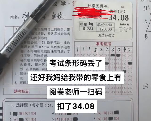 相比之下,这位老师对待这种搞小动作的学生还算好的,因为有的老师不仅没批改成卷子,甚至还被坑得损失了钱财。就像有位同学在考试时发现自己的条形码丢了,可上交答题卡必须要有条形码呀。